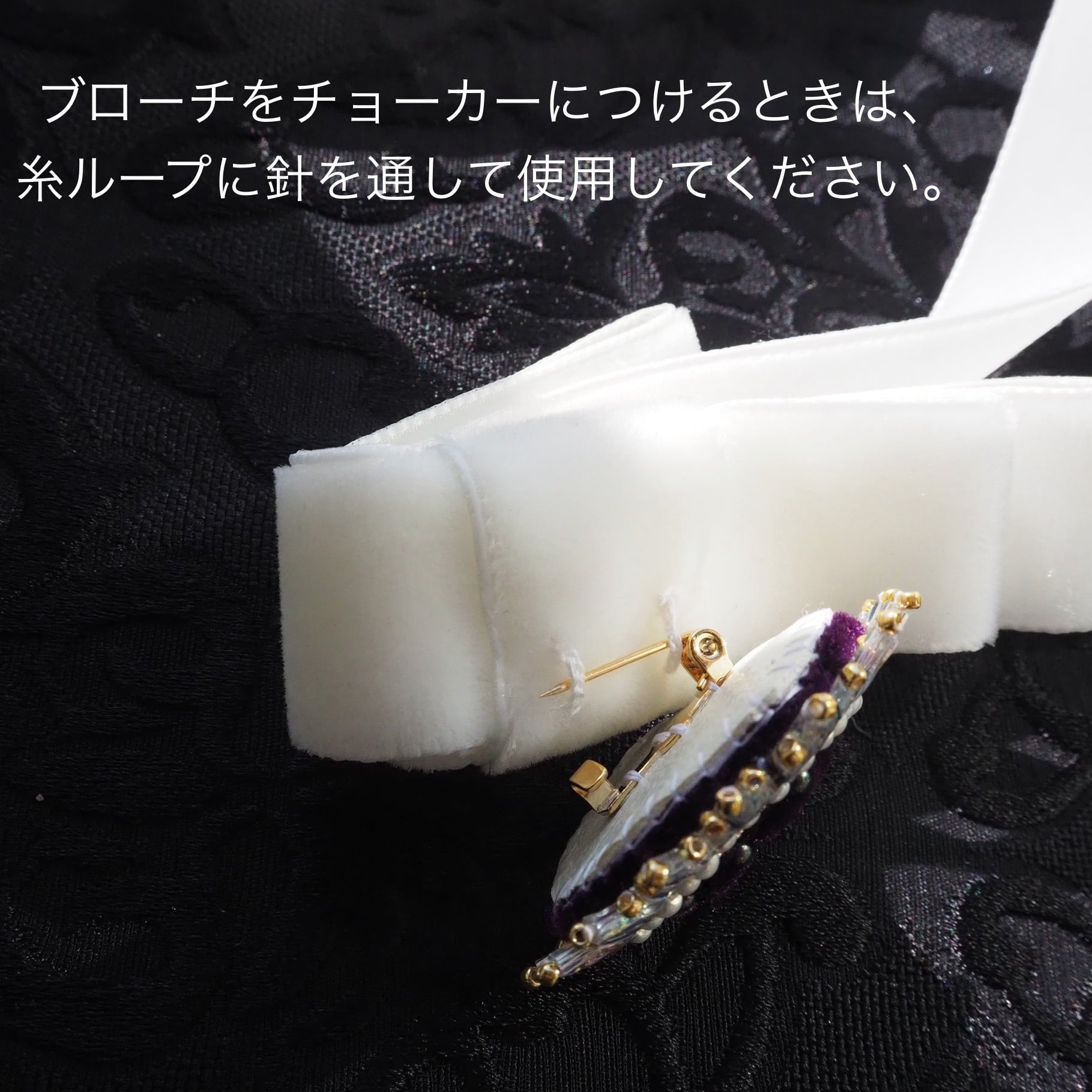 ブローチ単体としても、チョーカーとしても使えるアクセサリー。